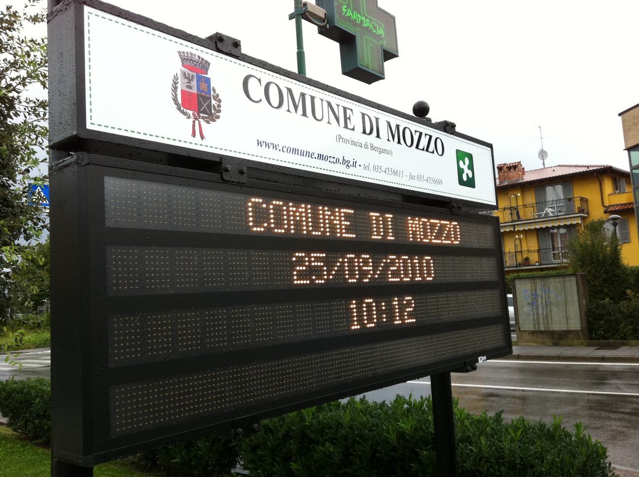A tempo di record sono stati montati i nuovi tabelloni luiminosi di informazione del comune. Esteticamente piu semplici con infomazioni essenziali. Il collegamento al network provinciale dei comuni potra’ dare nuove informazioni? Lo vedremo nelle prossime settimane.
