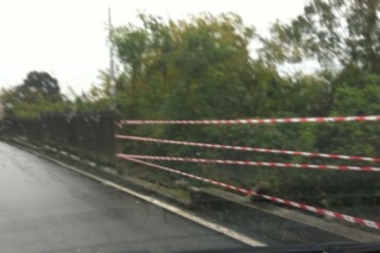 Crollata e transennata la staccionata ferroviara per circa 15 metri. Forse dovuto a problemi di manutenzione o per la forte pioggia. Non abbiamo ricevuto segnalazioni di eventuali incidenti stradali