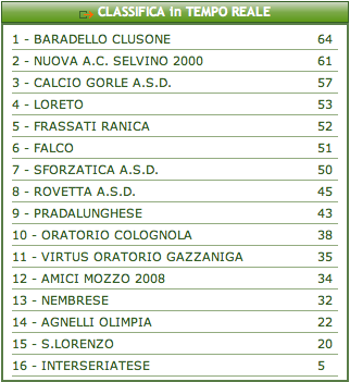 Calcio a Mozzo: per chi si e’ perso le classifiche finali ecco i riepiloghi di fine campionato admin11 giugno 20114 luglio 2011 Navigazione articoli PrecedenteContinua seconda categoria ASDC Mozzo seconda categoria GS Amici Mozzo 2008 CSI: GS Amici Mozzo 2008 Condividi:CondivisioneTweet Fai clic qui per stampare (Si apre in una nuova finestra) Stampa Fai clic per inviare un link a un amico via e-mail (Si apre in una nuova finestra) E-mail Mi piace Caricamento... Correlati