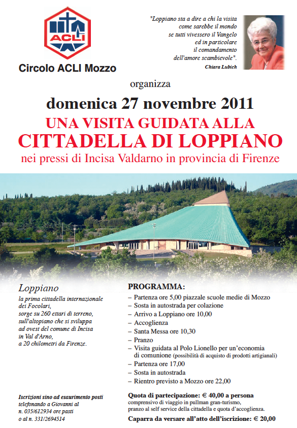 Mozzo/Acli: visita a Firenze il 27 novembre admin23 novembre 201122 novembre 2011blog post Navigazione articoli PrecedenteContinua Condividi:CondivisioneTweet Stampa (Si apre in una nuova finestra) Stampa Invia un link a un amico via e-mail (Si apre in una nuova finestra) E-mail Mi piace Caricamento... Correlati