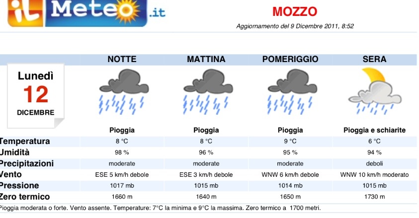 Mozzo/Tempo: lunedì si prevede acqua. admin9 dicembre 20119 dicembre 2011blog post Navigazione articoli PrecedenteContinua Condividi:CondivisioneTweet Fai clic qui per stampare (Si apre in una nuova finestra) Stampa Fai clic per inviare un link a un amico via e-mail (Si apre in una nuova finestra) E-mail Mi piace Caricamento... Correlati
