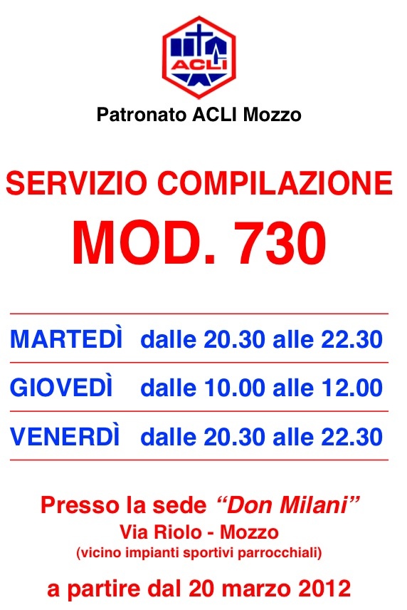 Mozzo/Acli: parte il servizio dichiarazioni redditi dal 20 marzo admin13 marzo 201213 marzo 2012blog post Navigazione articoli PrecedenteContinua Condividi:CondivisioneTweet Stampa (Si apre in una nuova finestra) Stampa Invia un link a un amico via e-mail (Si apre in una nuova finestra) E-mail Mi piace Caricamento... Correlati