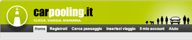 Carpooling.it è il portale italiano gratuito di carpooling per viaggiare insieme e risparmiare. Accedi alla più grande banca dati italiana di carpooling con più di 600.000 viaggi nazionali ed internazionali attraverso la seguente maschera o cercando per passaggi per città (per es.Carpooling Milano o Carpooling Roma). Per segnalare un’offerta/richiesta di passaggio, vai su Inserisci viaggio.