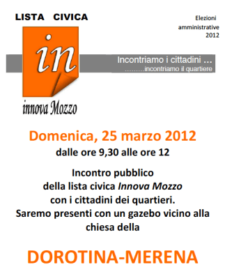 Mozzo/Elezioni2012: appuntamento della lista Innova Mozzo alla Dorotina-Merena il 25 marzo admin22 marzo 201229 marzo 2012blog post, elezioni Navigazione articoli PrecedenteContinua (spazio a cura del comitato elettorale Innova Mozzo) Condividi:CondivisioneTweet Fai clic qui per stampare (Si apre in una nuova finestra) Stampa Fai clic per inviare un link a un amico via e-mail (Si apre in una nuova finestra) E-mail Mi piace Caricamento... Correlati