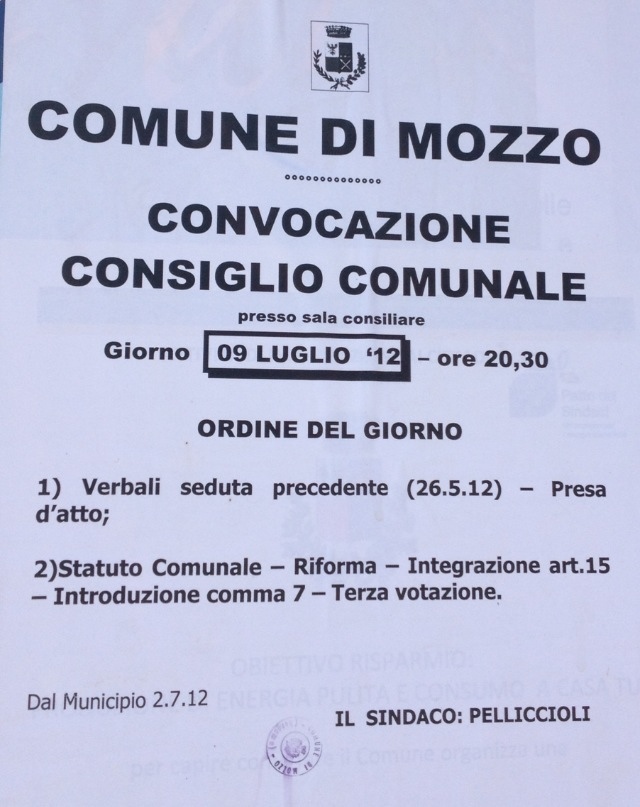 Mozzo: Consiglio Comunale il 9 luglio 2012 admin4 luglio 20124 luglio 2012blog post Navigazione articoli PrecedenteContinua Condividi:CondivisioneTweet Fai clic qui per stampare (Si apre in una nuova finestra) Stampa Fai clic per inviare un link a un amico via e-mail (Si apre in una nuova finestra) E-mail Mi piace Caricamento... Correlati