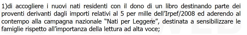 Ogni bambino ha diritto ad essere protetto non solo dalla malattia e dalla violenza ma anche dalla mancanza di adeguate occasioni di sviluppo affettivo e cognitivo. Questo è il cuore di Nati per Leggere. Dal 1999, il progetto ha l’obiettivo di promuovere la lettura ad alta voce ai bambini di età compresa tra i 6 mesi e i 6 anni. Recenti ricerche scientifiche dimostrano come il leggere ad alta voce, con una certa continuità, ai bambini in età prescolare abbia una positiva influenza sia dal punto di vista relazionale (è una opportunità di relazione tra bambino e genitori), che cognitivo (si sviluppano meglio e più precocemente la comprensione del linguaggio e la capacità di lettura). Inoltre si consolida nel bambino l’abitudine a leggere che si protrae nelle età successive grazie all’approccio precoce legato alla relazione.