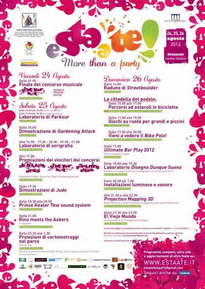 Mozzo/E-sta-a-te: more than a party – 24-25-26 agosto admin7 agosto 2012blog post Navigazione articoli PrecedenteContinua Condividi:CondivisioneTweet Fai clic qui per stampare (Si apre in una nuova finestra) Stampa Fai clic per inviare un link a un amico via e-mail (Si apre in una nuova finestra) E-mail Mi piace Caricamento... Correlati