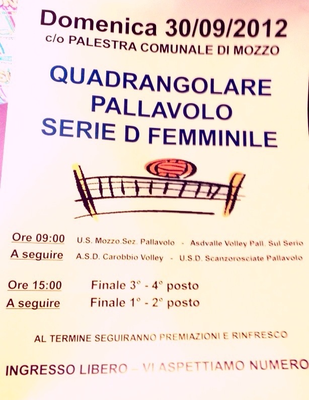 Mozzo/Pallavolo: quadrangolare il 30 settembre admin26 settembre 201226 settembre 2012blog post Navigazione articoli PrecedenteContinua Condividi:CondivisioneTweet Fai clic qui per stampare (Si apre in una nuova finestra) Stampa Fai clic per inviare un link a un amico via e-mail (Si apre in una nuova finestra) E-mail Mi piace Caricamento... Correlati