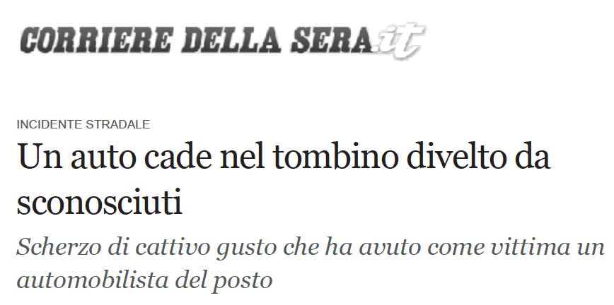 viaUn auto cade nel tombino divelto da sconosciuti – Corriere Bergamo.