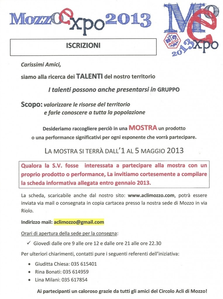 Mozzo/Acli Mozzo expo 2013 – Iscrizioni letto su ACLI Mozzo admin18 ottobre 201218 ottobre 2012blog post Navigazione articoli PrecedenteContinua Mozzo expo 2013 – Iscrizioni. Condividi:CondivisioneTweet Fai clic qui per stampare (Si apre in una nuova finestra) Stampa Fai clic per inviare un link a un amico via e-mail (Si apre in una nuova finestra) E-mail Mi piace Caricamento... Correlati