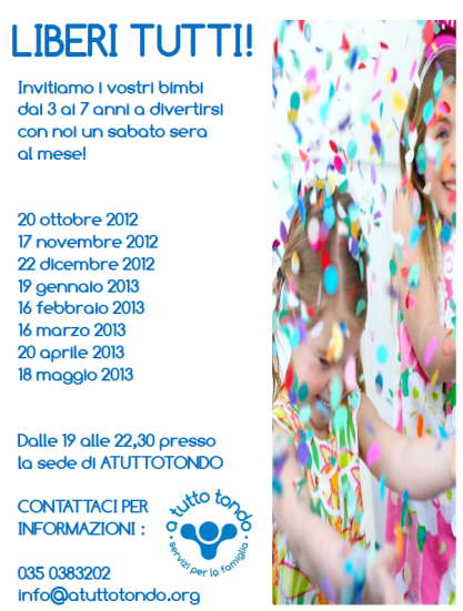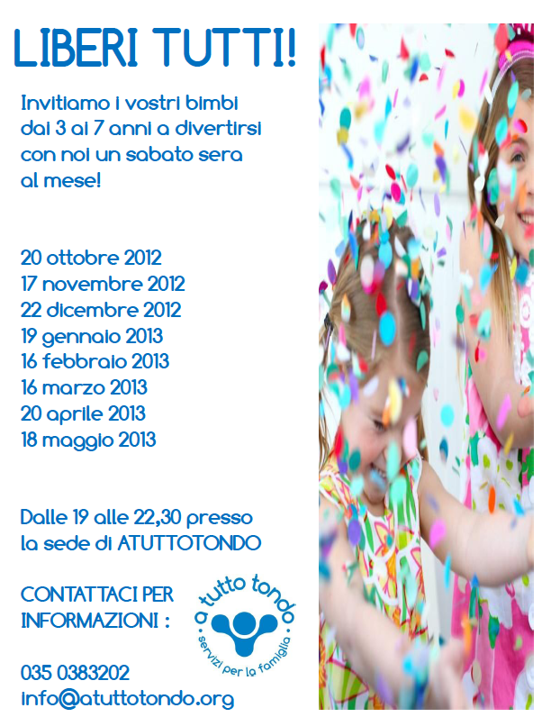 se desiderate far partecipare i vostri bimbi alle serata di Liberitutti di sabato 20 ottobre, è necessario prenotare entro giovedì 18 ottobre!