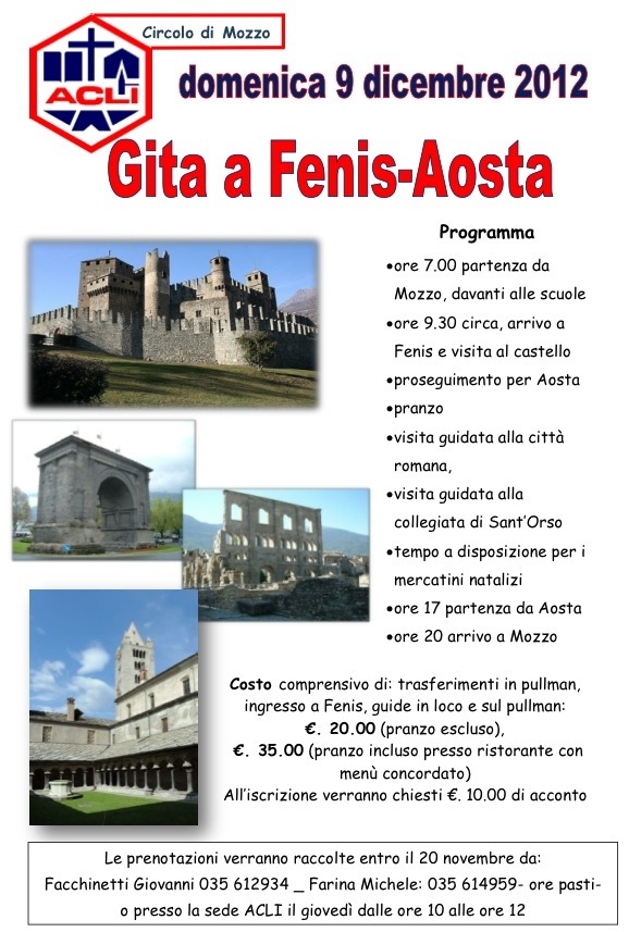 Mozzo/Acli: il 9 dicembre gita a Fenis-Aosta admin19 ottobre 201219 ottobre 2012blog post Navigazione articoli PrecedenteContinua Condividi:CondivisioneTweet Stampa (Si apre in una nuova finestra) Stampa Invia un link a un amico via e-mail (Si apre in una nuova finestra) E-mail Mi piace Caricamento... Correlati