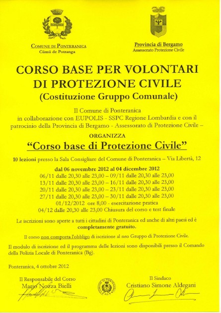 programma del corso che si terrà il 6 novembre a Ponteranica: nel caso qualcuno avesse