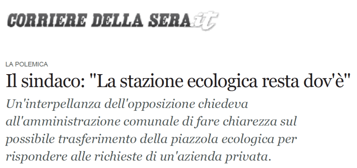 viaIl sindaco: “La stazione ecologica resta dov’è” – Corriere Bergamo.