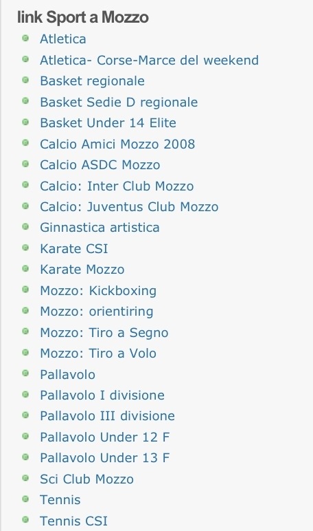 Mozzo/Sport: tutti i risultati della settimana. admin4 novembre 20124 novembre 2012blog post Navigazione articoli PrecedenteContinua Condividi:CondivisioneTweet Fai clic qui per stampare (Si apre in una nuova finestra) Stampa Fai clic per inviare un link a un amico via e-mail (Si apre in una nuova finestra) E-mail Mi piace Caricamento... Correlati