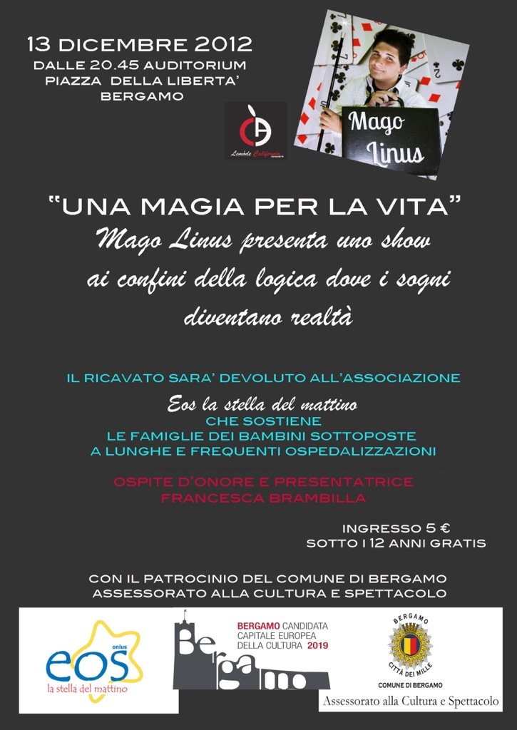 Mozzo/Eos: una magia per la vita il 13 dicembre admin9 dicembre 20129 dicembre 2012blog post Navigazione articoli PrecedenteContinua Condividi:CondivisioneTweet Fai clic qui per stampare (Si apre in una nuova finestra) Stampa Fai clic per inviare un link a un amico via e-mail (Si apre in una nuova finestra) E-mail Mi piace Caricamento... Correlati