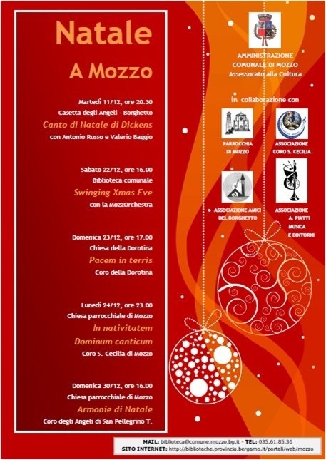 Mozzo: i concerti di Natale. admin12 dicembre 201212 dicembre 2012blog post Navigazione articoli PrecedenteContinua Condividi:CondivisioneTweet Fai clic qui per stampare (Si apre in una nuova finestra) Stampa Fai clic per inviare un link a un amico via e-mail (Si apre in una nuova finestra) E-mail Mi piace Caricamento... Correlati