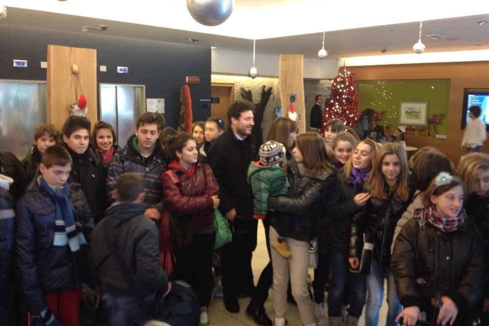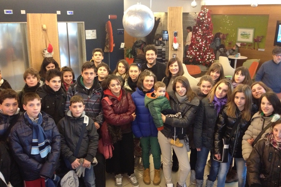 Il Sindaco, il direttore dell’Hotel Holiday Inn Express ( che ospita i ragazzi), il direttore del Golf Indoor, l ‘organizzatrice della visita Danielle Marinoni, gli alpini e i bersaglieri hanno accolto i ragazzi di San Felice sul Panaro con i loro insegnanti. Oggi relax nella palestra del Golf Indoor e dopo il pranzo visita in città Alta. Serata ospiti a cena nella casetta degli Alpini Telethon al cine teatro Agora’. Domani S.Messa e mercatini di solidarietà in piazza poi pranzo al Golf Indoor.