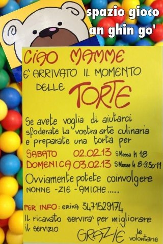 Mozzo: spazio An Ghin Go’ cercasi mamme esperte pasticciere…. admin16 gennaio 201316 gennaio 2013blog post Navigazione articoli PrecedenteContinua Condividi:CondivisioneTweet Fai clic qui per stampare (Si apre in una nuova finestra) Stampa Fai clic per inviare un link a un amico via e-mail (Si apre in una nuova finestra) E-mail Mi piace Caricamento... Correlati