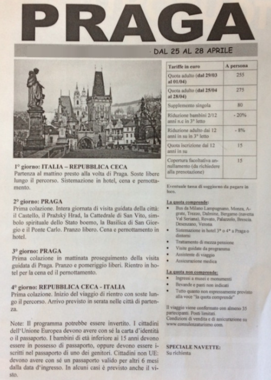 Mozzo/Coscritti: la classe 1950 va a Praga. admin7 febbraio 20137 febbraio 2013blog post Navigazione articoli PrecedenteContinua Info e prenotazioni entro il 28 febbraio presso Edicola Medolago in Piazza Trieste. Condividi:CondivisioneTweet Fai clic qui per stampare (Si apre in una nuova finestra) Stampa Fai clic per inviare un link a un amico via e-mail (Si apre in una nuova finestra) E-mail Mi piace Caricamento... Correlati
