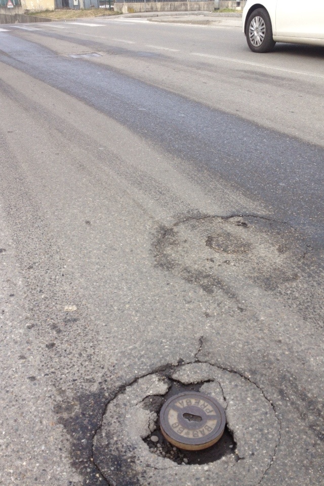 “Segnalo che in cima alla salita del sottopasso verso il centro, l’asfalto sprofonda, all’ improvviso ci si imbatte in una piccola buca pericolosa per le moto e bici”