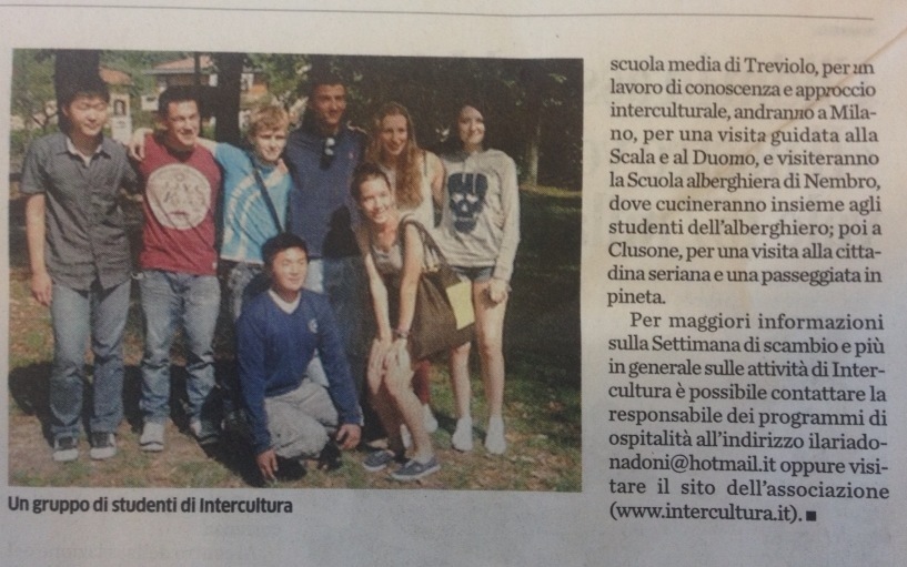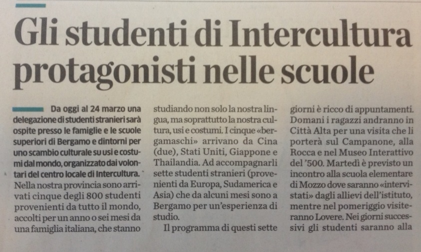 “Ieri su l ‘Eco di Bergamo c’era questo articolo inerente Intercultura e la visita di alcuni ragazzi alle primarie di Mozzo martedi 19.03.13