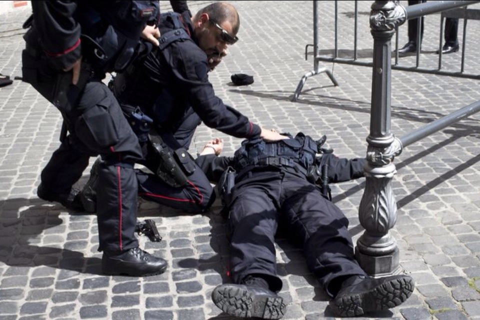 Durante la cerimonia di giurmento del governo Letta, un uomo ha sparato davanti a Palazzo Chigi – sede della presidenza del Consiglio – colpendo due carabinieri. Ad aprire il fuoco un uomo in giacca e cravatta che all’improvviso ha sparato. I due carabinieri avrebbero risposto al fuoco.