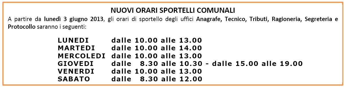 Mozzo/Comune: nuovi orari degli uffici comunali e sportelli pubblici. admin28 Maggio 201328 Maggio 2013blog post Navigazione articoli PrecedenteContinua Condividi:CondivisioneTweet Fai clic qui per stampare (Si apre in una nuova finestra) Stampa Fai clic per inviare un link a un amico via e-mail (Si apre in una nuova finestra) E-mail Mi piace Caricamento... Correlati