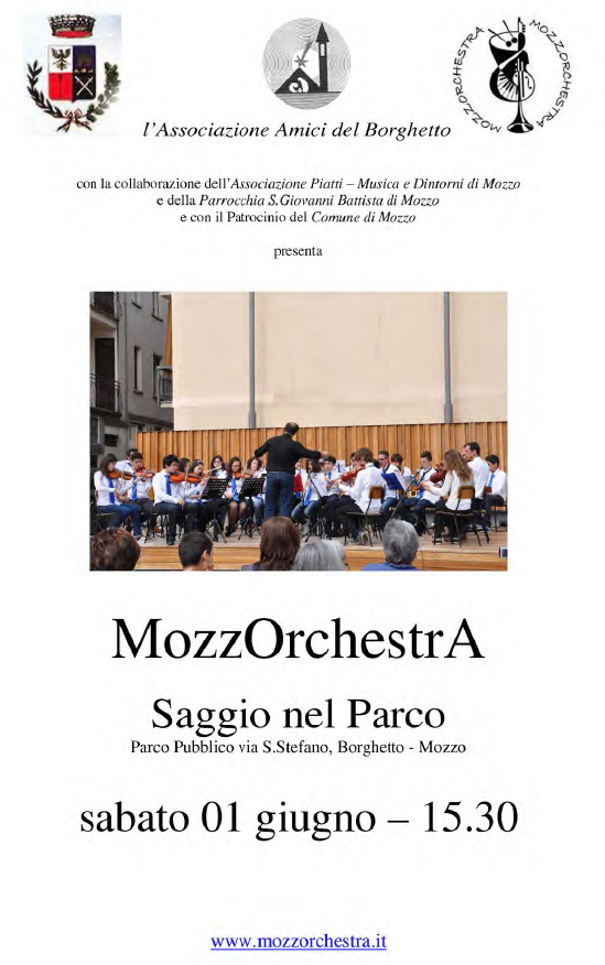 Mozzo/Borghetto: Concerto MozzOrchestra il 1 giugno al parco di S. Stefano. admin30 Maggio 201329 Maggio 2013blog post Navigazione articoli PrecedenteContinua Condividi:CondivisioneTweet Fai clic qui per stampare (Si apre in una nuova finestra) Stampa Fai clic per inviare un link a un amico via e-mail (Si apre in una nuova finestra) E-mail Mi piace Caricamento... Correlati