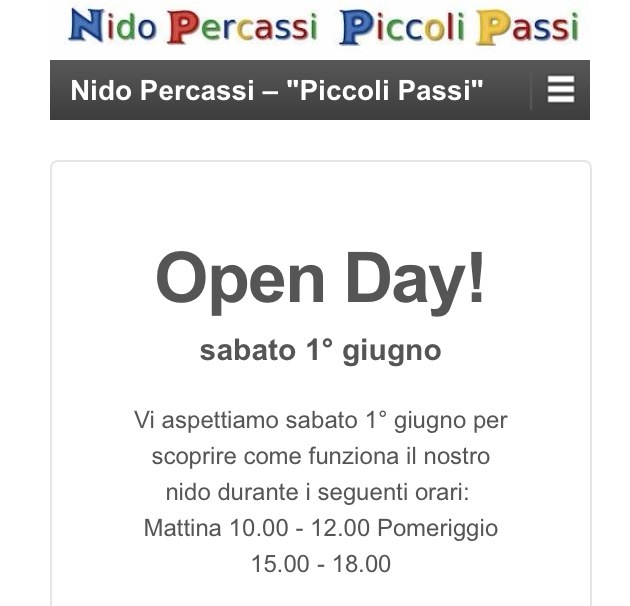 Mozzo/Nido comunale: aperto il sito web admin31 Maggio 201331 Maggio 2013blog post Navigazione articoli PrecedenteContinua Nido Percassi – “Piccoli Passi” Coop Sociale Onlus – paritita iva 03198590162 | Piccoli Passi Coop Sociale Onlus. Condividi:CondivisioneTweet Stampa (Si apre in una nuova finestra) Stampa Invia un link a un amico via e-mail (Si apre in una nuova finestra) E-mail Mi piace Caricamento... Correlati