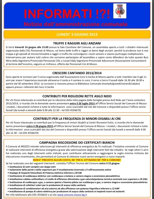Mozzo/Comune: INFORMATI del 10 giugno admin10 giugno 201310 giugno 2013blog post Navigazione articoli PrecedenteContinua Condividi:CondivisioneTweet Fai clic qui per stampare (Si apre in una nuova finestra) Stampa Fai clic per inviare un link a un amico via e-mail (Si apre in una nuova finestra) E-mail Mi piace Caricamento... Correlati