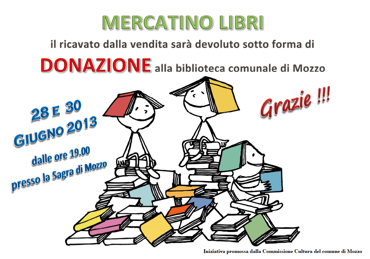 Mozzo/Biblioteca: mercatino libri alla sagra venerdi e domenica admin28 giugno 201328 giugno 2013blog post Navigazione articoli PrecedenteContinua Condividi:CondivisioneTweet Fai clic qui per stampare (Si apre in una nuova finestra) Stampa Fai clic per inviare un link a un amico via e-mail (Si apre in una nuova finestra) E-mail Mi piace Caricamento... Correlati