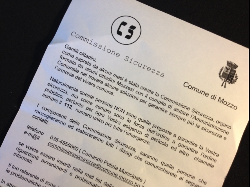 Nei prossimi giorni verrà ultimata la consegna a tutte le famiglie della comunicazione della commissione sicurezza che indica per ogni zona del paese un referente specifico “a cui esporre i disagi e le problematiche che stai vivendo nella massima riservatezza e anonimato”.