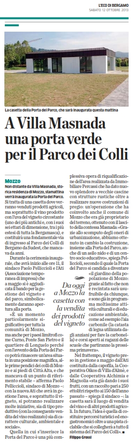 Mozzo/Vigneto: sabato 12 ottobre inaugurazione Porta Nel Parco admin11 ottobre 201316 ottobre 2013blog post Navigazione articoli PrecedenteContinua rassegna stampa Condividi:CondivisioneTweet Fai clic qui per stampare (Si apre in una nuova finestra) Stampa Fai clic per inviare un link a un amico via e-mail (Si apre in una nuova finestra) E-mail Mi piace Caricamento... Correlati