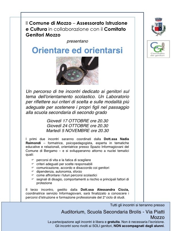 Mozzo/Scuola: Orientare e Orientarsi il 24 settembre admin22 ottobre 201322 ottobre 2013blog post Navigazione articoli PrecedenteContinua Mozzo/Scuola: Orientare e Orientarsi Condividi:CondivisioneTweet Fai clic qui per stampare (Si apre in una nuova finestra) Stampa Fai clic per inviare un link a un amico via e-mail (Si apre in una nuova finestra) E-mail Mi piace Caricamento... Correlati