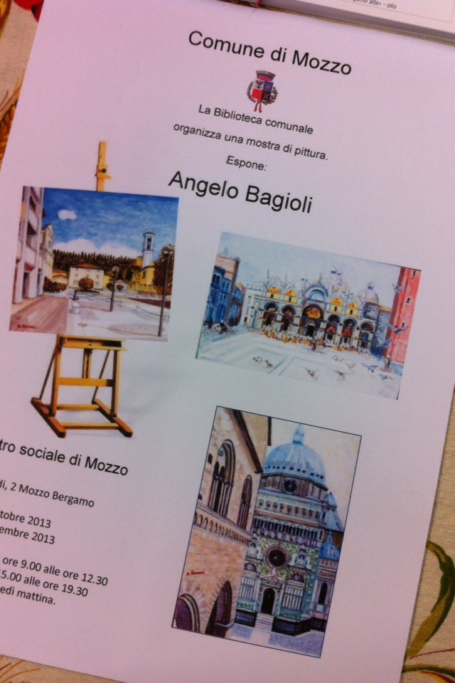 Mozzo/Centro Sociale: successo di pubblico per la 3a Mostra di Pittura ( fino al 3 novembre) del mozzese Bagioli admin25 ottobre 201322 ottobre 2013blog post Navigazione articoli PrecedenteContinua Condividi:CondivisioneTweet Fai clic qui per stampare (Si apre in una nuova finestra) Stampa Fai clic per inviare un link a un amico via e-mail (Si apre in una nuova finestra) E-mail Mi piace Caricamento... Correlati