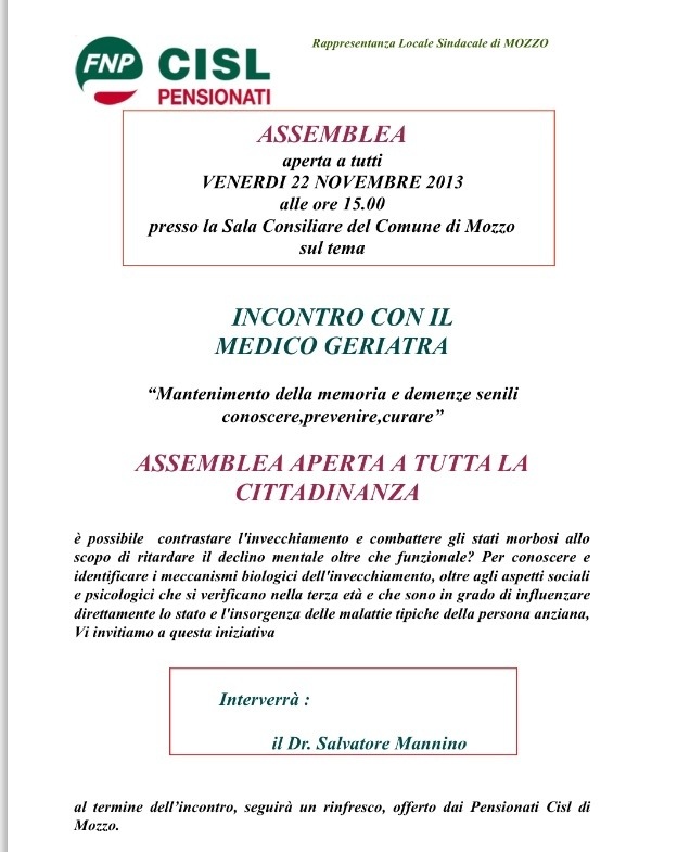 Mozzo: incontro Cisl Pensionati il 22 novembre admin14 novembre 201314 novembre 2013blog post Navigazione articoli PrecedenteContinua Condividi:CondivisioneTweet Stampa (Si apre in una nuova finestra) Stampa Invia un link a un amico via e-mail (Si apre in una nuova finestra) E-mail Mi piace Caricamento... Correlati