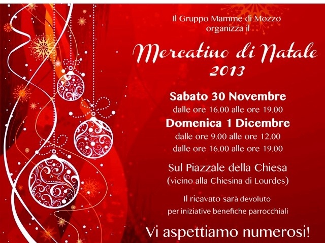 Il Gruppo Mamme di Mozzo organizza per sabato 30 novembre (dalle 17.30 alle 19.30) e domenica 1 dicembre (dalle 8 alle