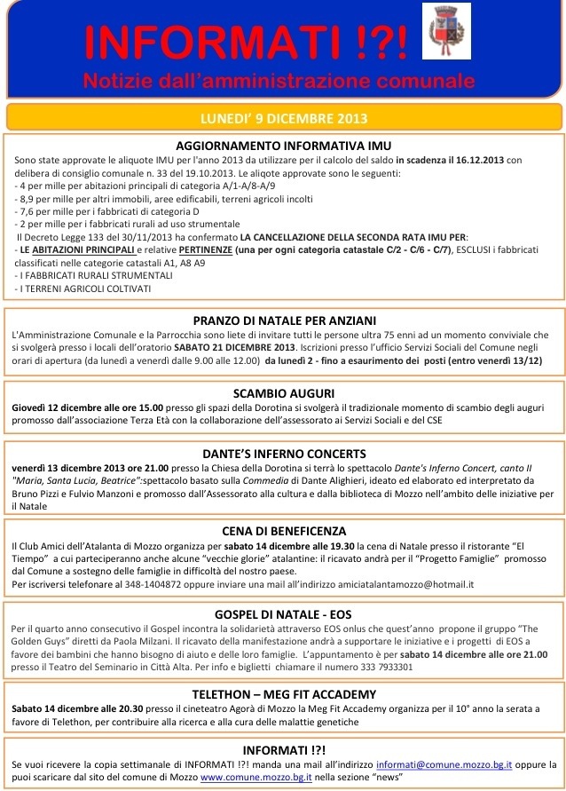 Mozzo/Comune: INFORMATI del 9 dicembre 2013 admin10 dicembre 20139 dicembre 2013blog post Navigazione articoli PrecedenteContinua Condividi:CondivisioneTweet Fai clic qui per stampare (Si apre in una nuova finestra) Stampa Fai clic per inviare un link a un amico via e-mail (Si apre in una nuova finestra) E-mail Mi piace Caricamento... Correlati