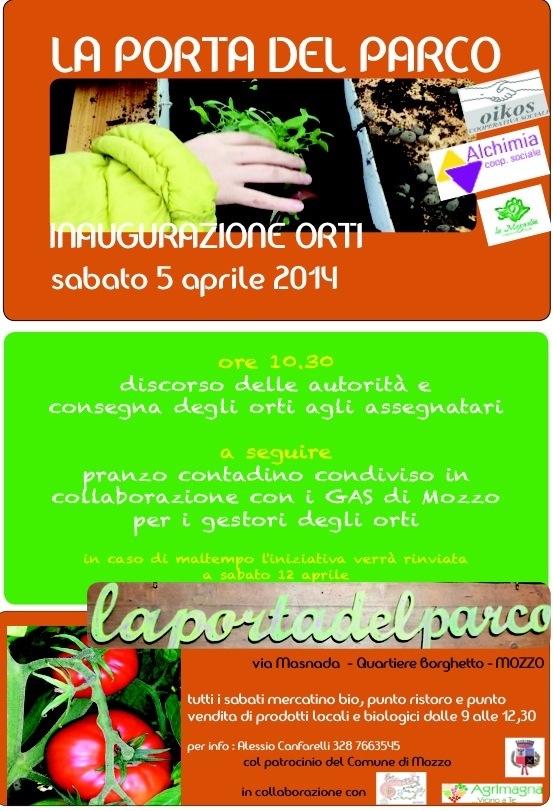 Mozzo/Porta del Parco: inaugurazione orti il 5 marzo admin3 aprile 20143 aprile 2014blog post Navigazione articoli PrecedenteContinua ingradisci l’immagine Condividi:CondivisioneTweet Fai clic qui per stampare (Si apre in una nuova finestra) Stampa Fai clic per inviare un link a un amico via e-mail (Si apre in una nuova finestra) E-mail Mi piace Caricamento... Correlati