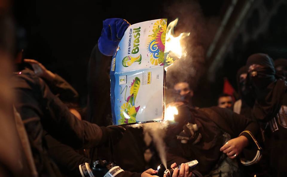 “Manifestanti a San Paolo bruciano album della ” FIFA ”