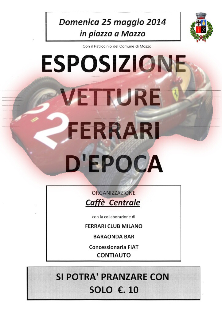 Mozzo: Ferrari d’epoca in Piazza domenica dalle 10 alle 18. admin24 Maggio 201424 Maggio 2014blog post Navigazione articoli PrecedenteContinua Ingrandisci . Condividi:CondivisioneTweet Fai clic qui per stampare (Si apre in una nuova finestra) Stampa Fai clic per inviare un link a un amico via e-mail (Si apre in una nuova finestra) E-mail Mi piace Caricamento... Correlati
