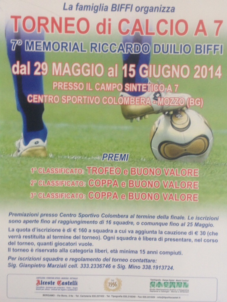 Mozzo/Torneo: 7mo Memorial Riccardo Duilio Biffi dal 29 maggio admin27 Maggio 201427 Maggio 2014blog post Navigazione articoli PrecedenteContinua . Condividi:CondivisioneTweet Fai clic qui per stampare (Si apre in una nuova finestra) Stampa Fai clic per inviare un link a un amico via e-mail (Si apre in una nuova finestra) E-mail Mi piace Caricamento... Correlati