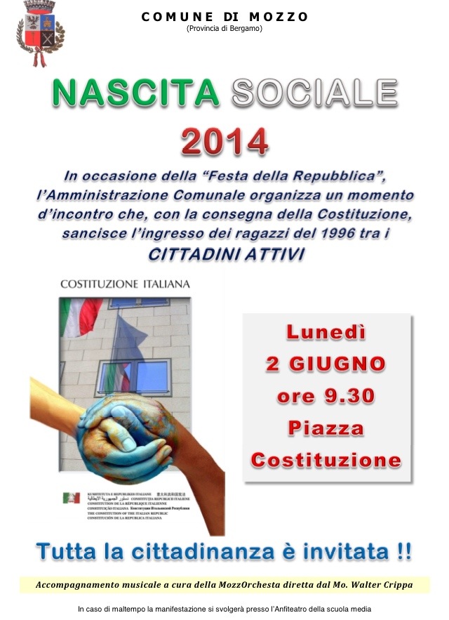 Mozzo/Classe ’96: Nascita sociale il 2 giugno admin27 Maggio 201419 Maggio 2014blog post Navigazione articoli PrecedenteContinua Leggi. Condividi:CondivisioneTweet Fai clic qui per stampare (Si apre in una nuova finestra) Stampa Fai clic per inviare un link a un amico via e-mail (Si apre in una nuova finestra) E-mail Mi piace Caricamento... Correlati