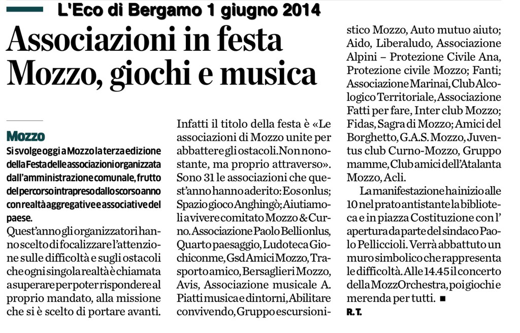 Mozzo: abbattuto il muro alla festa delle associazioni. admin1 giugno 20149 agosto 2014blog post Navigazione articoli PrecedenteContinua Tutte le foto Condividi:CondivisioneTweet Fai clic qui per stampare (Si apre in una nuova finestra) Stampa Fai clic per inviare un link a un amico via e-mail (Si apre in una nuova finestra) E-mail Mi piace Caricamento... Correlati