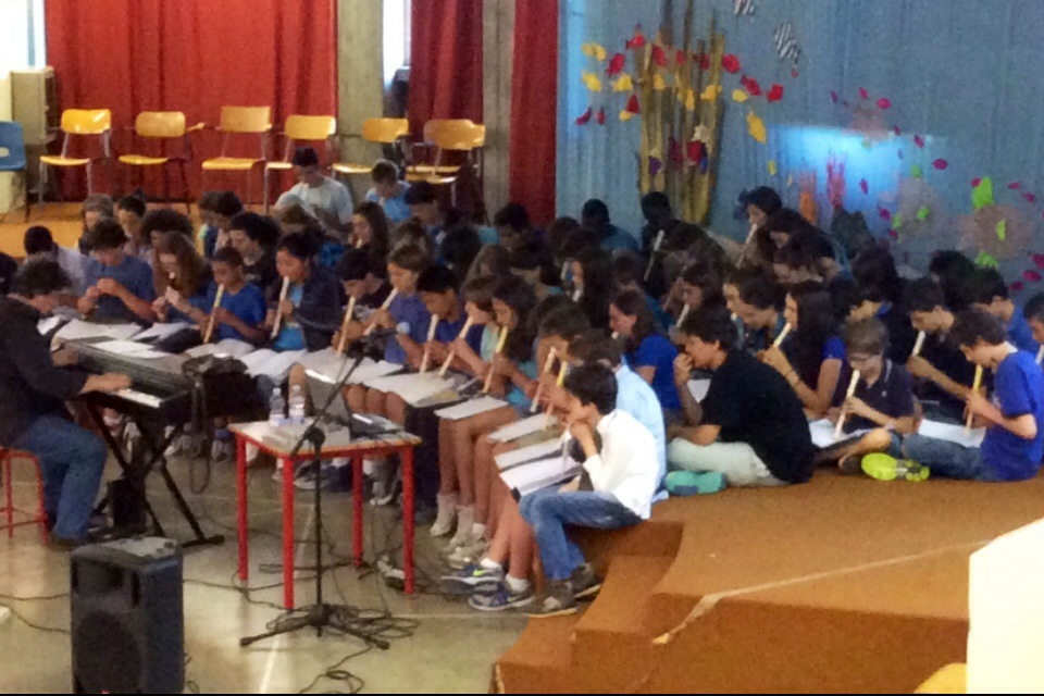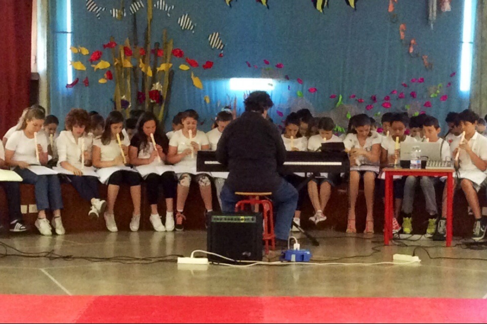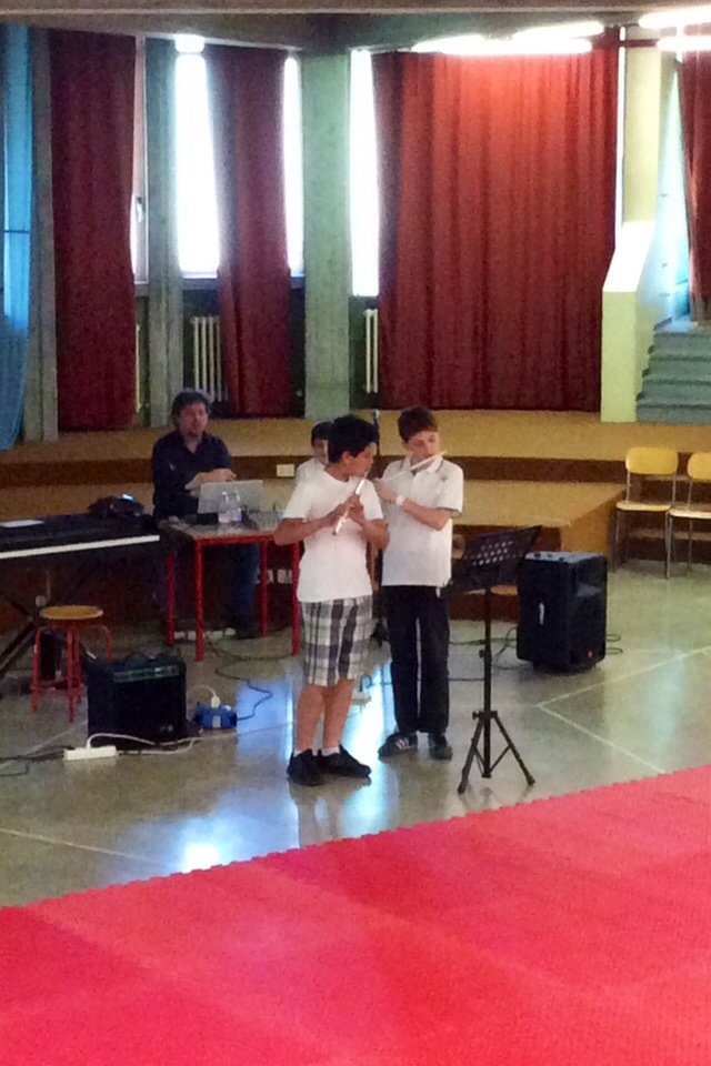 “Allego alcuni scatti fatti alla scuola media in occasione del saggio musicale di fine anno coordinato dal Mo. Roger Rota. Grande !!!