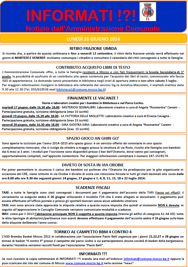 Mozzo/Comune: INFORMATI del 16 giugno 2014 admin17 giugno 201416 giugno 2014blog post Navigazione articoli PrecedenteContinua Condividi:CondivisioneTweet Fai clic qui per stampare (Si apre in una nuova finestra) Stampa Fai clic per inviare un link a un amico via e-mail (Si apre in una nuova finestra) E-mail Mi piace Caricamento... Correlati