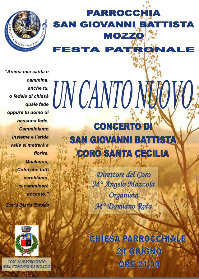 Mozzo/Corale: concerto “Un canto nuovo” il 21 giugno admin19 giugno 201427 giugno 2014blog post Navigazione articoli PrecedenteContinua . Condividi:CondivisioneTweet Fai clic qui per stampare (Si apre in una nuova finestra) Stampa Fai clic per inviare un link a un amico via e-mail (Si apre in una nuova finestra) E-mail Mi piace Caricamento... Correlati