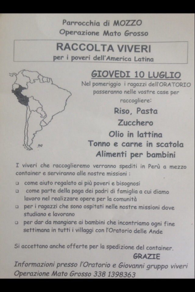 Mozzo/Mato Grosso: raccolta viveri giovedì 10 luglio admin4 luglio 20144 luglio 2014blog post Navigazione articoli PrecedenteContinua . Condividi:CondivisioneTweet Fai clic qui per stampare (Si apre in una nuova finestra) Stampa Fai clic per inviare un link a un amico via e-mail (Si apre in una nuova finestra) E-mail Mi piace Caricamento... Correlati