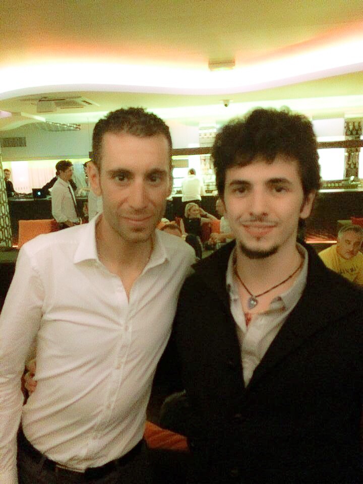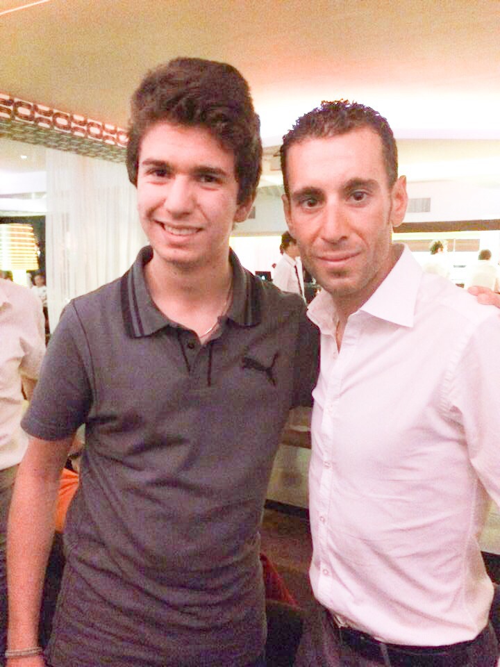 I figli del nostro concittadino massaggiatore del team Artsana, Umberto Inselvini, alla festa ieri sera per il successo italiano di Nibali al Tour de France.